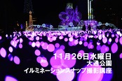 大通公園周辺でイルミネーションスナップ撮影を楽しむ講座です。気軽に冬の夜の雰囲気を撮ってみたい方にお勧めの講座です。公園内を散歩しながら被写体の探し方、撮影の基本を実際の撮影を楽しみながら学べる講座です。(三脚は使用しません)